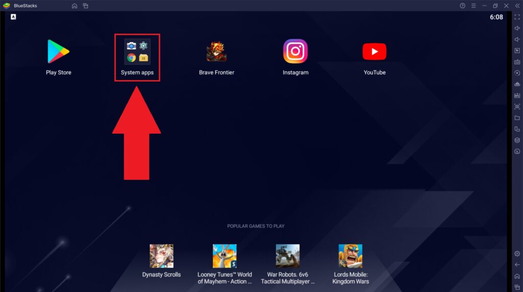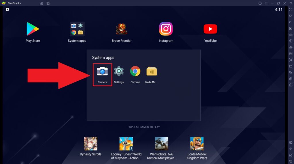 1. Чтобы открыть камеру в BlueStacks, на главном экране платформы перейдите в папку «Системные приложения».