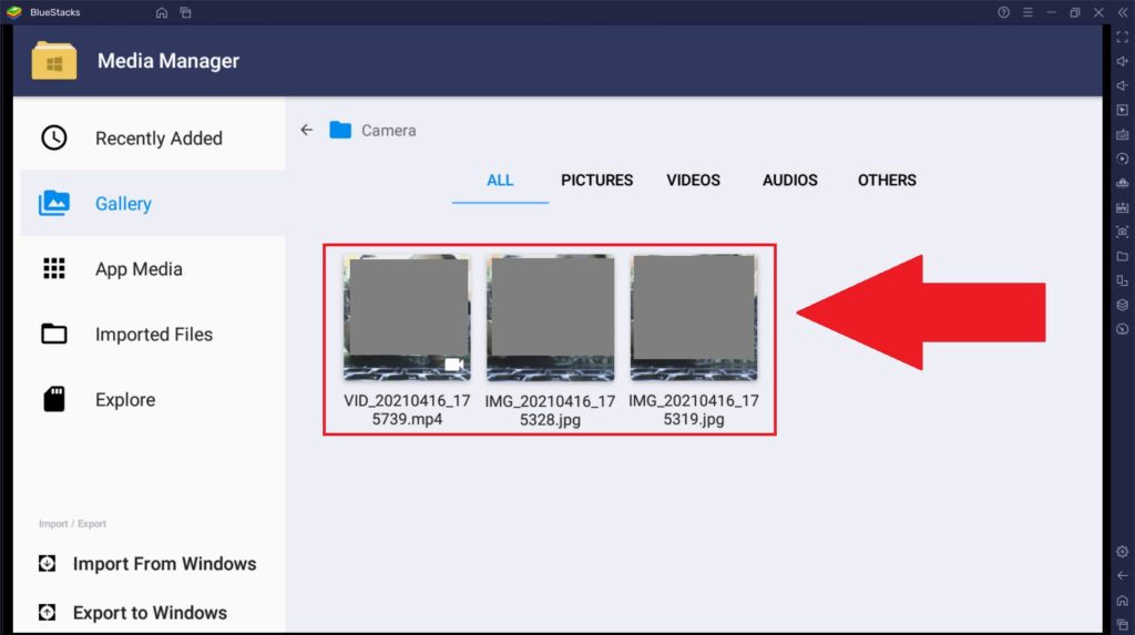 3. Все снятые изображения и видеоролики будут сохранены в медиа-менеджере, в папке «Галерея».