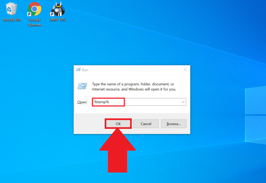 2. В окне введите команду %temp% и нажмите на «ОК».